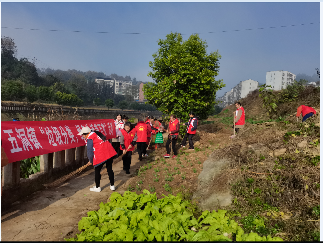 五洞镇新时代文明实践所开展河道沿岸垃圾清运志愿活动