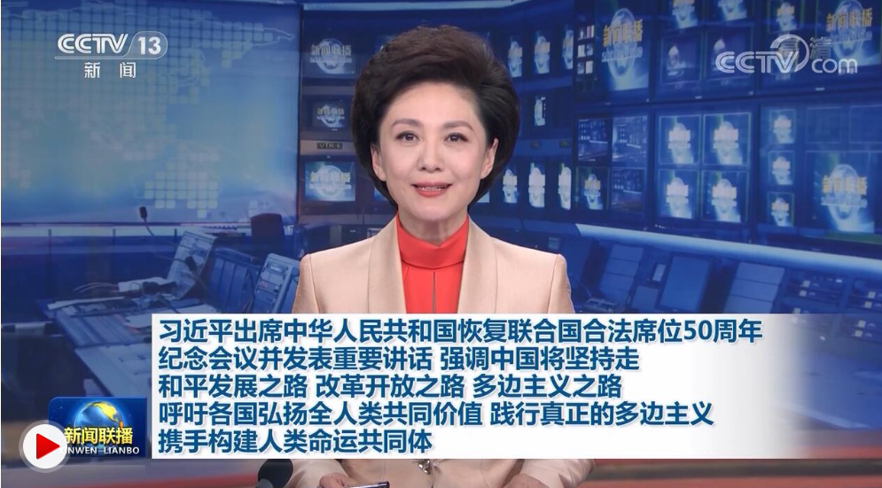 习近平出席中华人民共和国恢复联合国合法席位50周年纪念会议并发表重要讲话